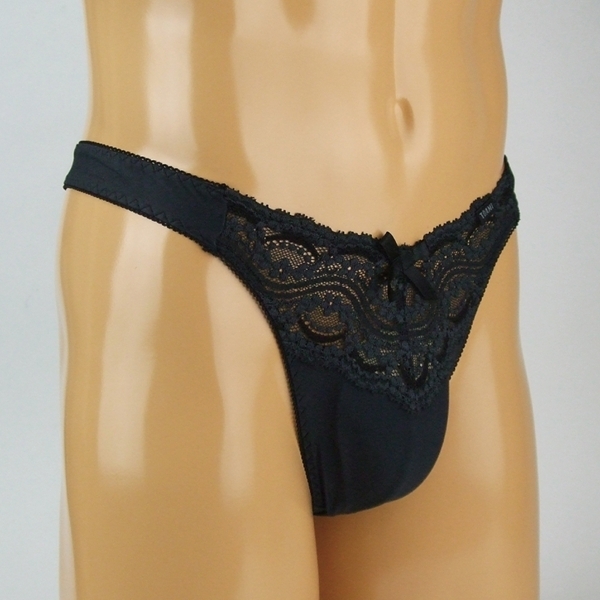 HOME > ランジェリー > ショーツ > メンズ ストレッチ&レースコンビTバック (ブラック)