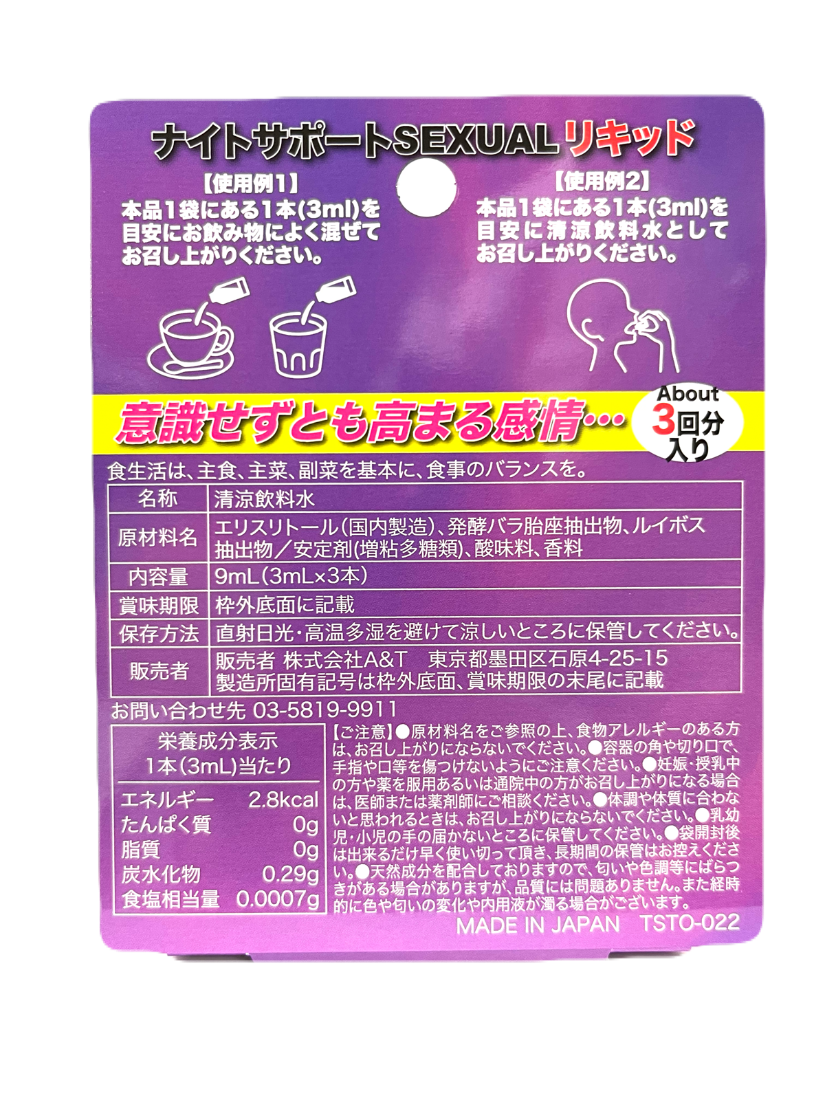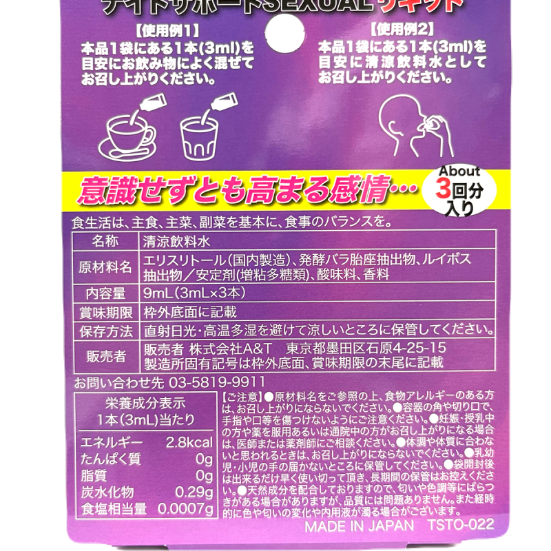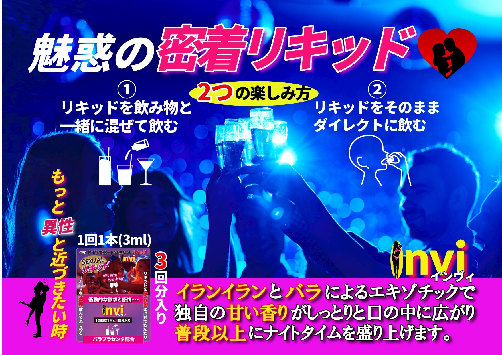 特別な夜に寄り添うフレーバーリキッドです!イランイランやバラ成分を含むこのリキッドは、エキゾチックな香りでリラックスと心地良いムードを高めます♪直接飲むことはもちろん、お好みのドリンクと混ぜても使用可能!味や色の変化が少ないため、さまざまな飲み物との相性も抜群です♪ほんの一滴で、いつもと違うひとときを演出したいときにぴったり!